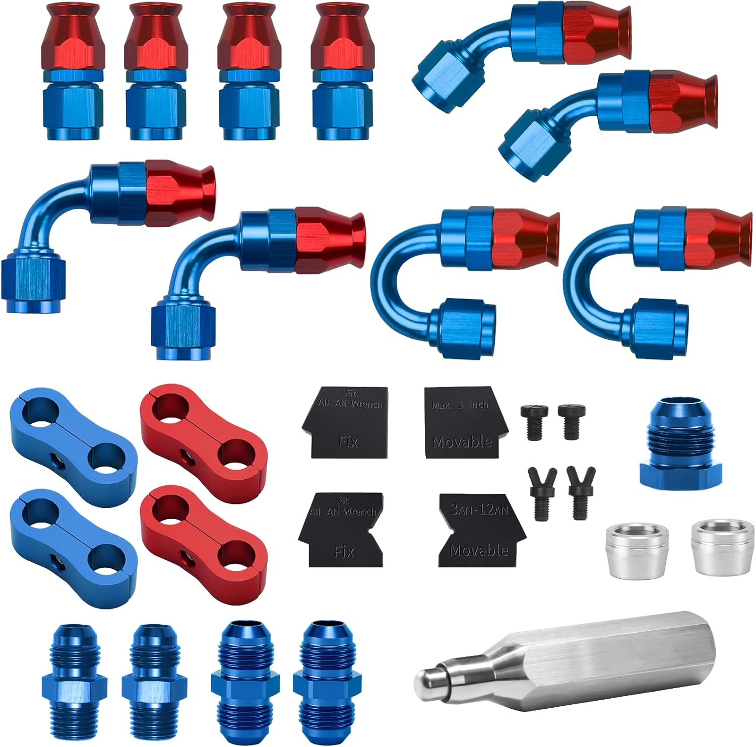 | Included Components | 6AN to 6AN Male Flare Coupler Union Straight, 6an male flare to 1/4" npt pipe fitting adapter, 6an ptfe hose fitting, AN6 Hose Separator Clamp, protective clamps for AN wrench |