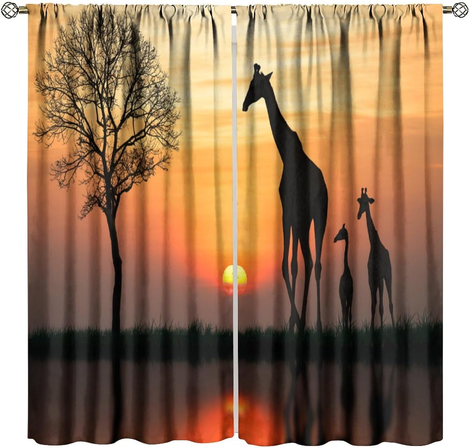 Product description High Quality Materials:Our window curtains are made of 100% high-quality polyester fabric with a soft, silky feel that complements most decor. The soft fabric is upmarket and durable, Our curtains can withstand years of use thanks to their quality finishing.Suitable for your bedroom, living room, dining room, infant room, kids room, nursery, office, hotel or other public place. Blackout Curtains: Leading high-definition digital printing technology to ensure long-term use without fading, environmentally friendly, breathable, durable, anti-wrinkle. Keep the light out and help to retain the warmth in winter and keep the cool in the summer.Without chemical coating, which is healthier and safer for people, especially babies and kids.High performance on blocking out full light, UV prevent and furniture protection, bring the uniform style indoor of your house. Good Workmanship: No loose threads.Premium sewing threads and stitching.All seams and hems are aligned.Do our best in every detail. Easy Care: Our drapes are easy to maintain, with hand-washable material that is also ironable at a low temperature.Machine washable. Mild detergents do not bleach. Low temperature ironing. After-Sales Service:100% satisfaction guarantee! We will give friendly customer service.