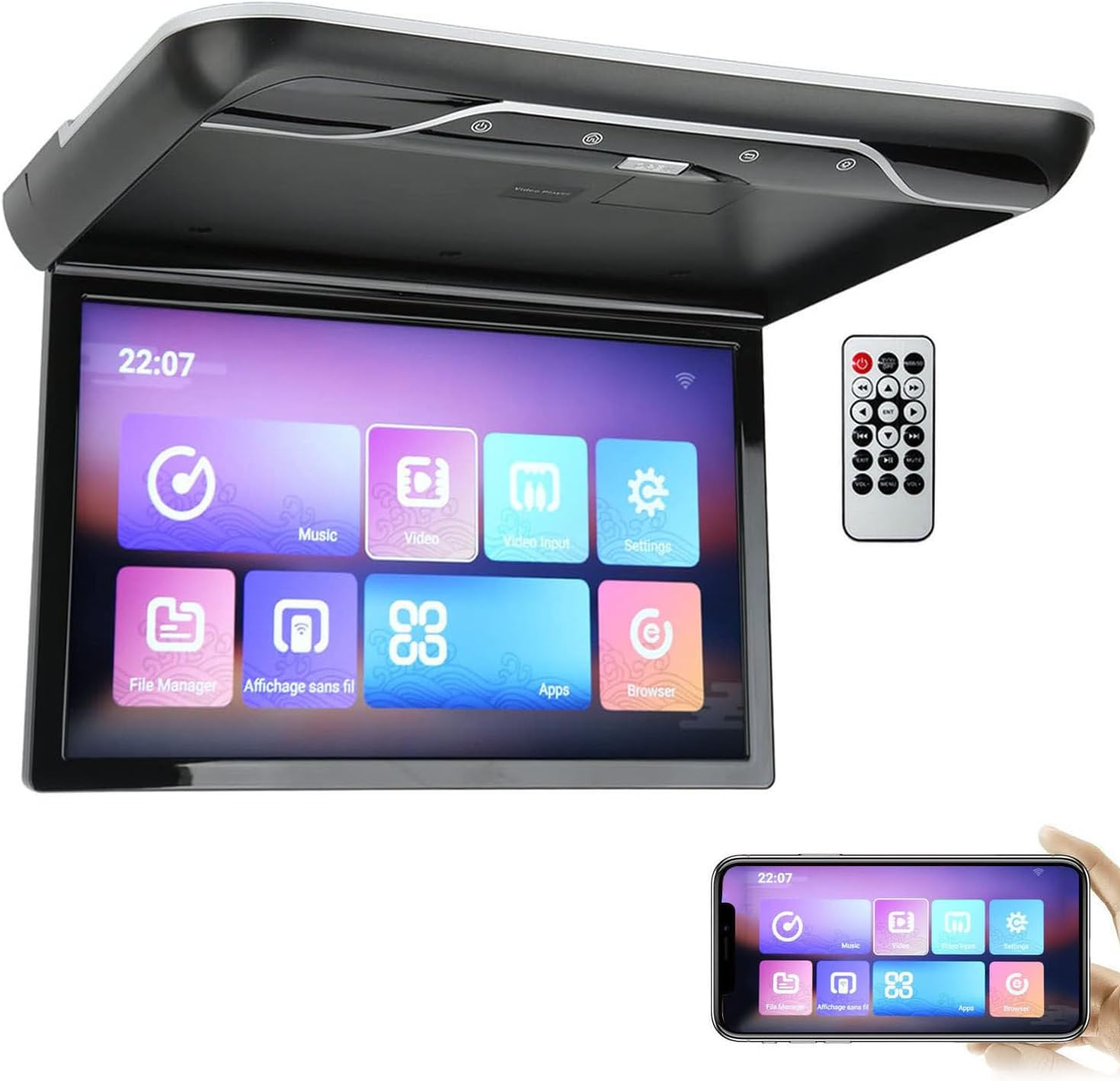 Car overhead display screen that offers high resolution output for clear visibility and flexibility for your utmost convenience and great viewing experience. Watch movies stored on usb flash drives or listen to your favorite music. Enjoyable, long road trips are now ensured with this equipment mounted on your car roof.FEATURES19-inch LEDDisplay ratio: 16:9Two video input, two audio input, two audio output16 Color atmosphere light, new streamline designPARAMETERVoltage: DC 12V-24VPower: 20WResolution: 1920×1080Format: MP4 / MPG / RM / RMVB / AVI / MPEG / VOBSupport USB/TF card with a max of 64GB and HDMI inputThe machine has its own speaker, which supports FMMachine size: 50×36×4.5cmIron plate size: 34×23cmPACKING LIST1 × Car Overhead Player1 × Remote ControlPlease note: This product doesn't have a dvd driveAny questions, please feel free to contact us. We will reply your message within 24 hours