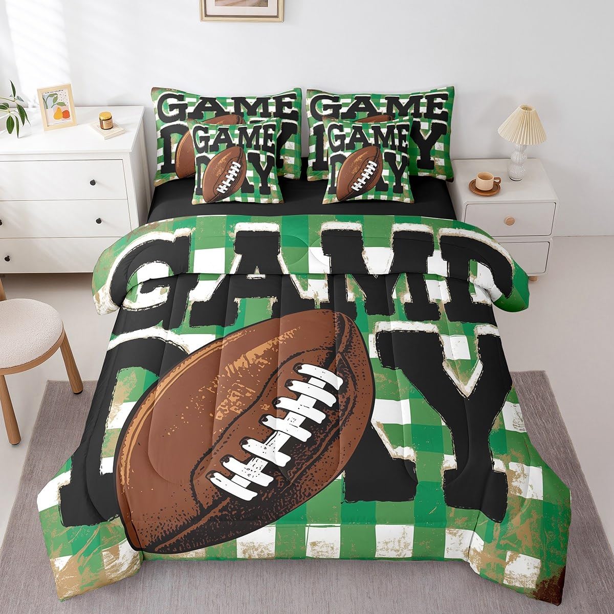 Colorful Makeover to Your Life Various size and color options, there are always decor room. Size Options: 7 Pieces Twin Size,1 Comforter 68"x 90", 1 Fitted Sheet 39"x75"x16", 1 Flat Sheet 96"x66", 2 Pillow Cases 30" x 20",2 Throw Pillow Covers,Covers Only. 18"x 18". 7 Pieces Full Size ,1 Comforter 79"x 90", 1 Fitted Sheet 54"x75"x16", 1 Flat Sheet 96"x81", 2 Pillow Cases 30" x 20",2 Throw Pillow Covers,Covers Only. 18"x 18". 7 Pieces Queen Size,1 Comforter 90"x 90", 1 Fitted Sheet 60"x80"x16", 1 Flat Sheet 102"x90", 2 Pillow Cases 30" x 20",2 Throw Pillow Covers,Covers Only. 18"x 18". 7 Pieces King Size,1 Comforter 104"x 90", 1 Fitted Sheet 78"x80"x16", 1 Flat Sheet 106"x90", 2 Pillow Cases 30" x 20",2 Throw Pillow Covers,Covers Only. 18"x 18". Decoration: For your mom, dad, sister, brother, grandma, wife, husband, and all other beloved with many surprising designs. You can find a design for everybody and every interest in our collection. Your Home,You Decide Different types of bedding sets could bring rooms in different styles. Also, rooms in different styles needs different types of bedding sets