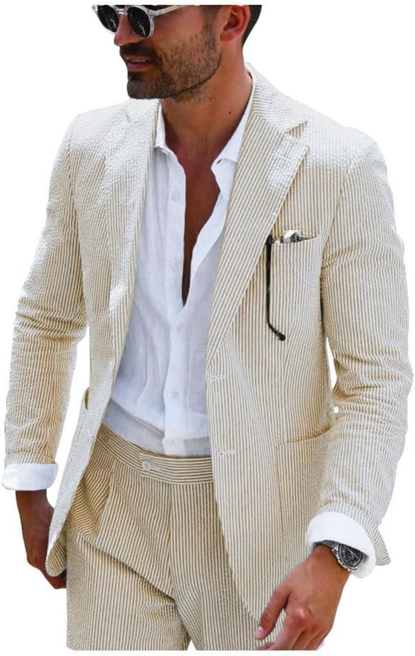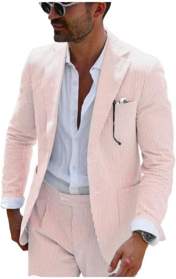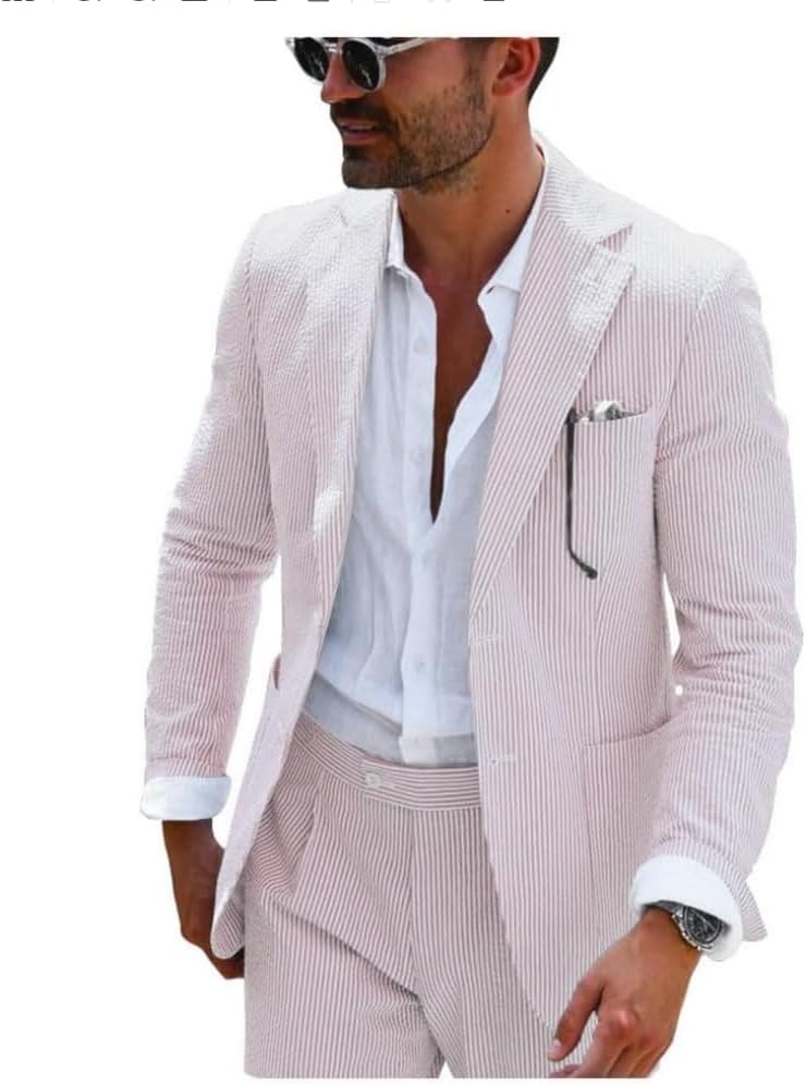 【Item Specification】Brand Name: POPELEMaterial: SeersuckerColor for You to Choose: Any color is available.Season: Fall,Summer,SpringOccasion: Perfect For Any Formal Occasion Such As Weddings, Proms, Parties; Office WearPackage Included: 1*Blazer,1*TrousersTailored Fit (for a more regular fit we recommend 1 size bigger).Please contact us for custom size.Please note:1.There would have around 0.5-1 inches size difference due to different manual measurement.2.There would have slight color difference due to different color settings on the computer.3.If you need further assistance,please feel free to contact us!