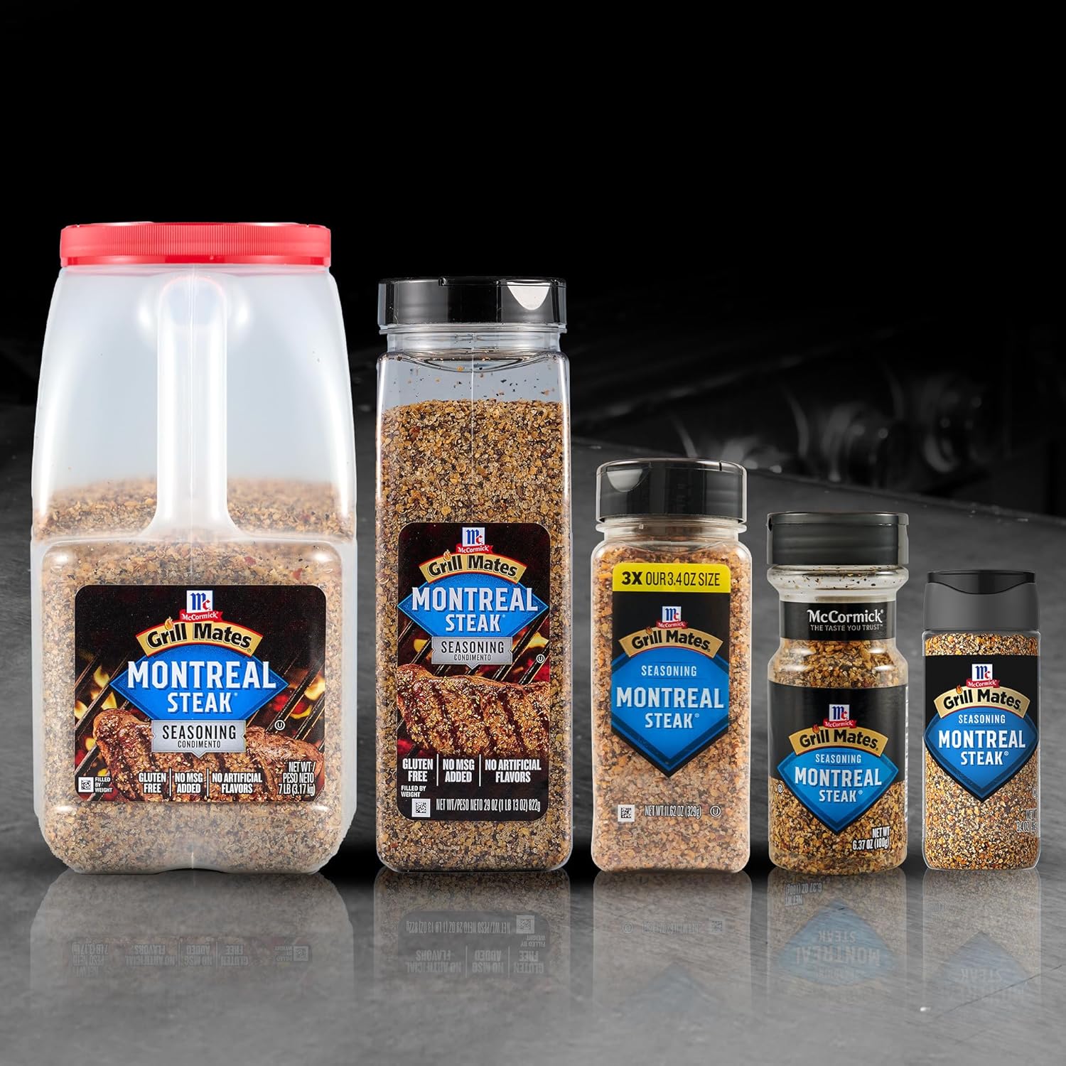 McCormick Grill Mates Montreal Steak Seasoning features a memorable blend of garlic, coarsely ground peppers and spices, delivering authentic, smoky flavor with or without the grill. Montreal steak seasoning is a fan favorite that elevates almost every recipe. Crafted especially for chefs and other professionals to inspire special menus, this McCormick spice blend delivers a consistent flavor, service after service and dish after dish. Steak rub seasoning creates a savory, bold flavor you'll love and is perfect for culinary use. Do you need to add a kick to various meals during a busy service? Use this product to liven up the taste of salads, fresh vegetables, steak, beef and other dishes. Beyond grilling steaks, Montreal steak seasoning is great for recipes like steak totchos, maitake steak sandwiches, tenderloin burgers covered with blue cheese and cheddar. The seasoning adds a burst of iconic flavor as an ingredient in meatloaf and sauteed mushrooms or as a topping for homemade and artisanal burger buns. McCormick Grill Mates Montreal Steak Seasoning works for all types of steak, from tenderloins to New York strips. Combine with olive oil and soy sauce for an authentic, mouthwatering steak marinade. If your kitchen is a busy place, you have too much to do to prepare and mix your own spice blends. Plus, purchasing enough small spice jars to keep high-volume kitchens well-stocked can be expensive. This large container holds enough pre-mixed seasoning to speed up weeks' worth of orders — or months of family dinners! McCormick's steak seasoning comes in an ample 7-pound supply for bulk applications. The blend is kosher with no MSG added, so you can feel confident serving only feel-good ingredients to your customers. For grilling, shake 1 tablespoon of seasoning per 1 pound of pork or steak burgers before broiling or grilling.