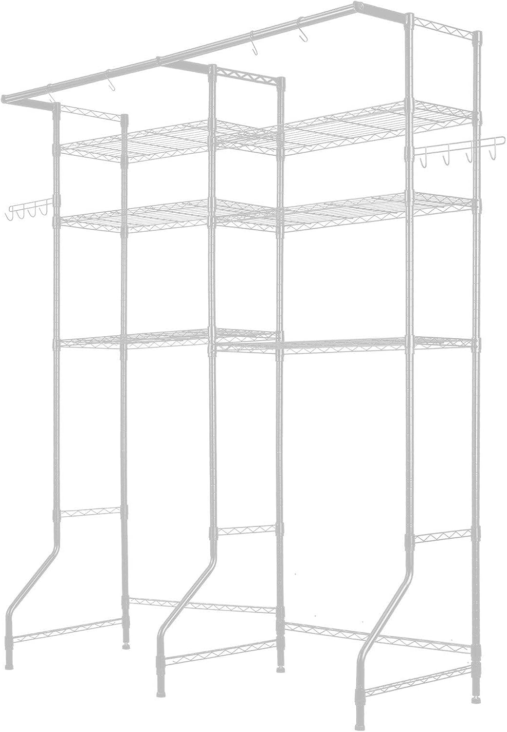 Over Washer and Dryer Storage Shelves, 6 Tiers Laundry Room Drying Rack with Hanger Rod and Hooks, Two Rows Adjustable Washer Shelves Space Saver, for Laundry Room Storage & Organization, Black