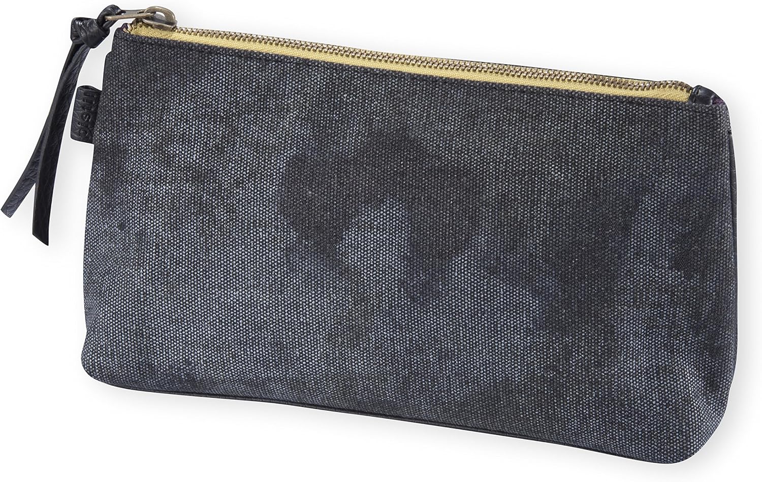 The all mine single compartment pouch from Pistil has a zip closure and faux leather base and trim. Metal hardware detailing and fabric lining.