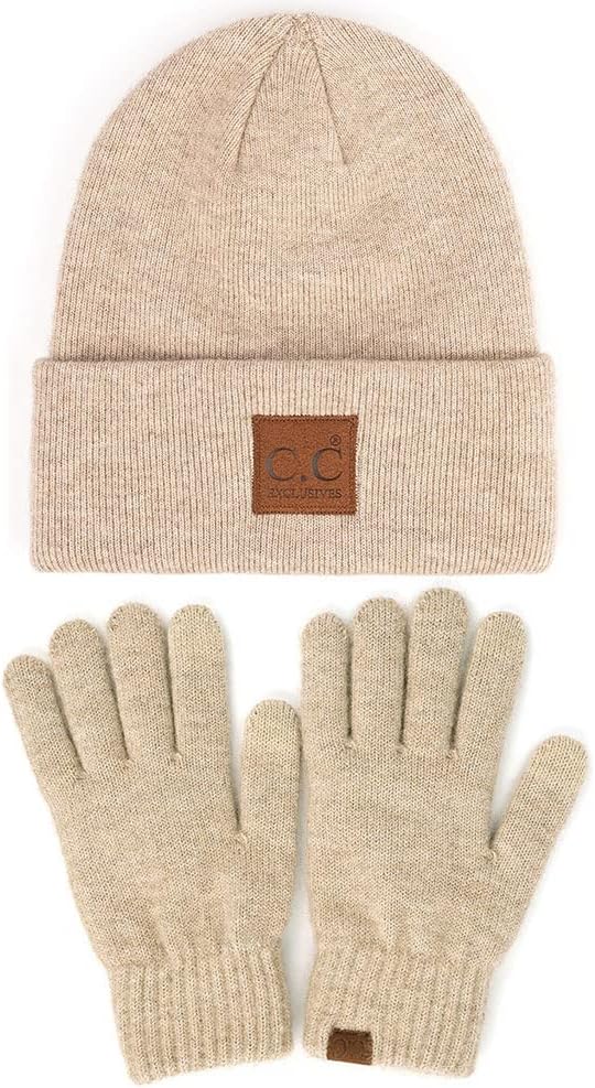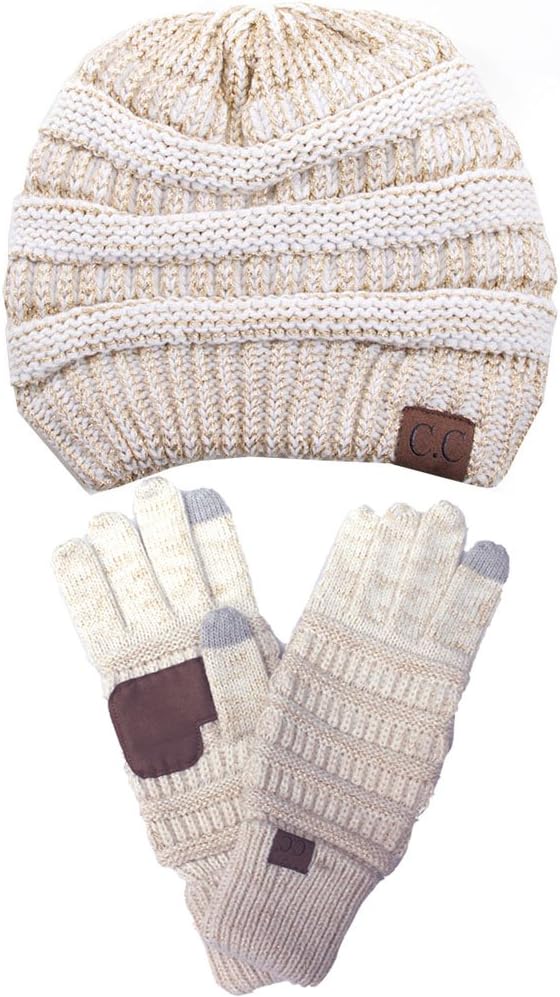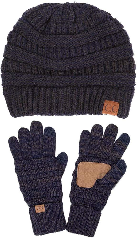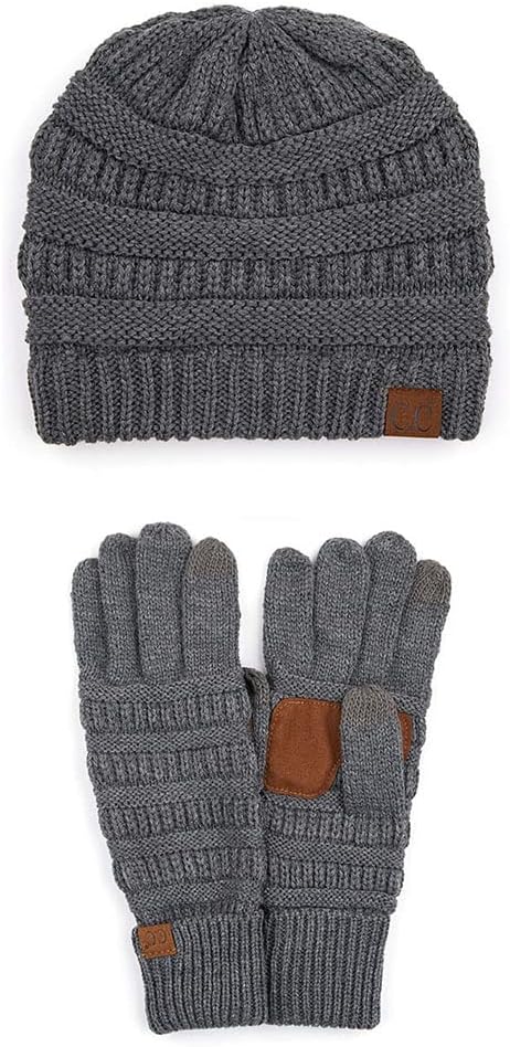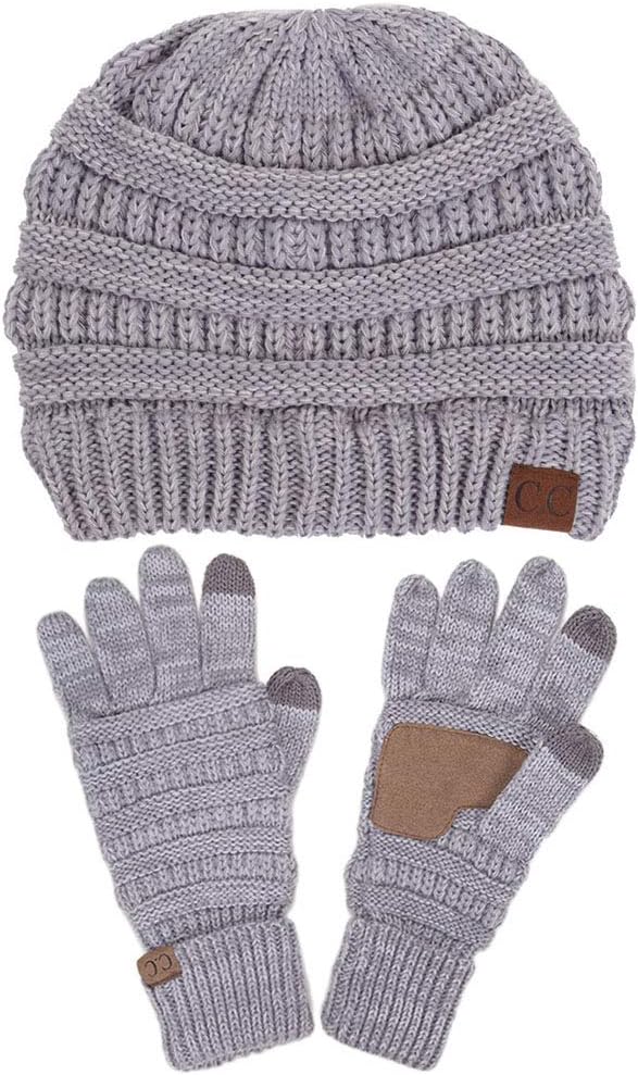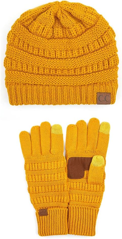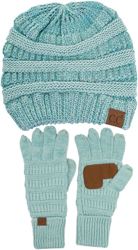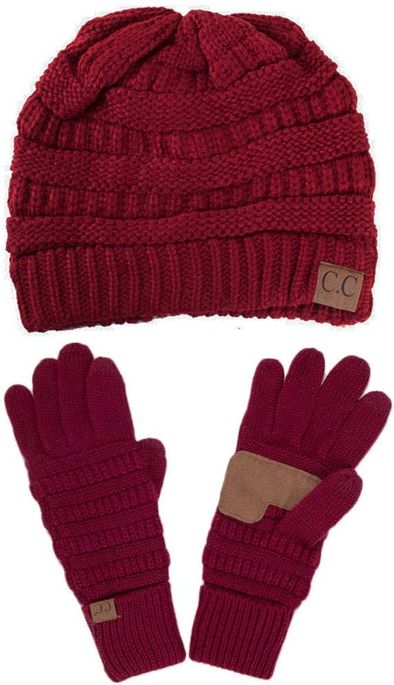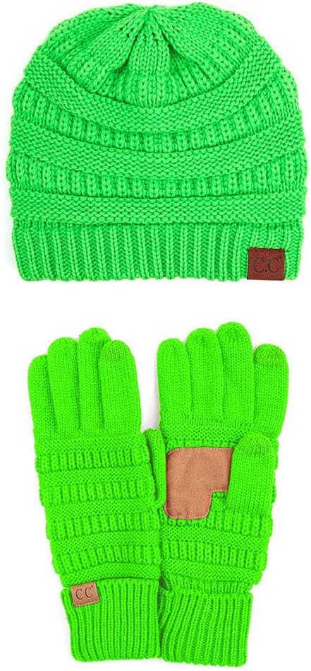 ScarvesMe 2pc Color Trendy Warm Chunky Soft Stretch Cable Knit Beanie with Perfect Matching Gloves Set