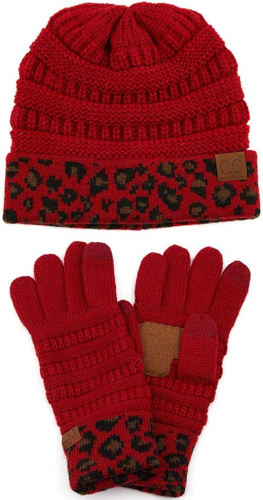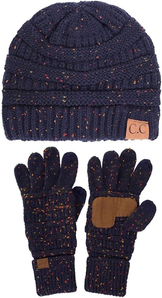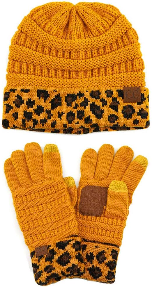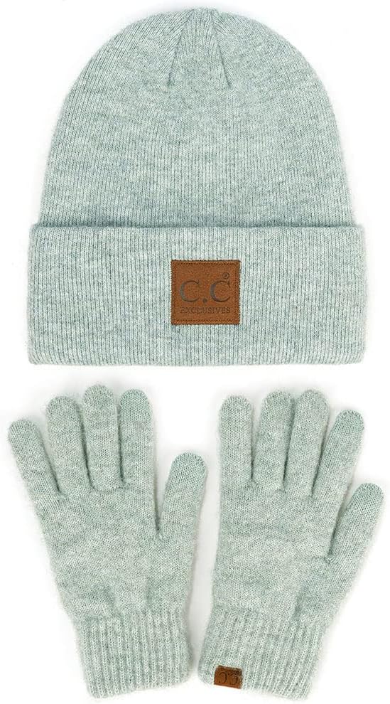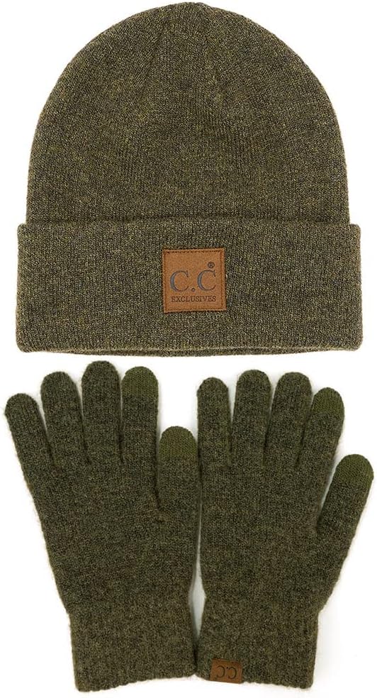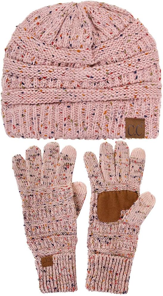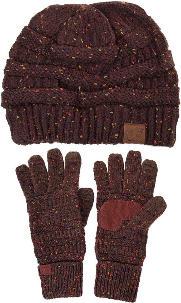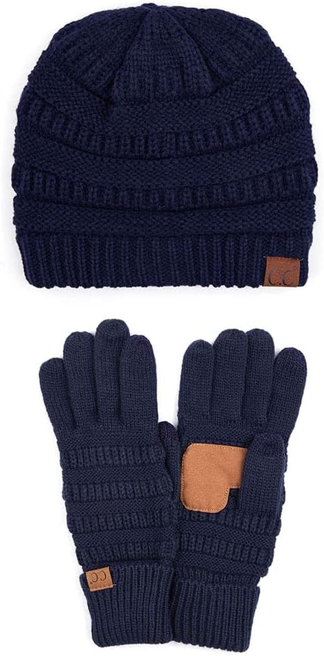 ScarvesMe 2pc Color Trendy Warm Chunky Soft Stretch Cable Knit Beanie with Perfect Matching Gloves Set