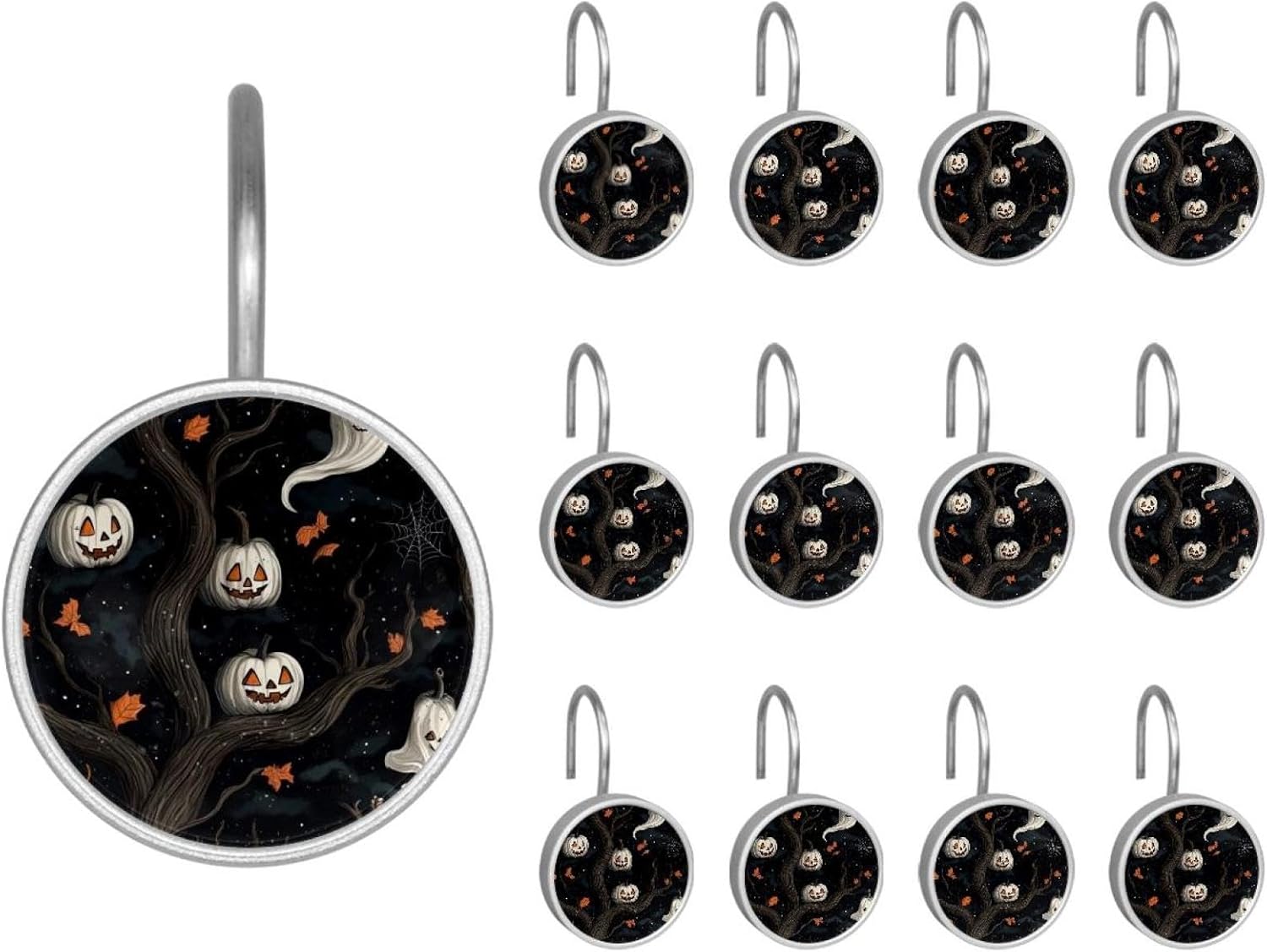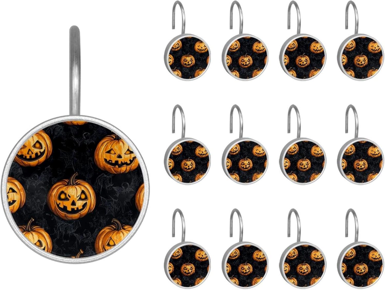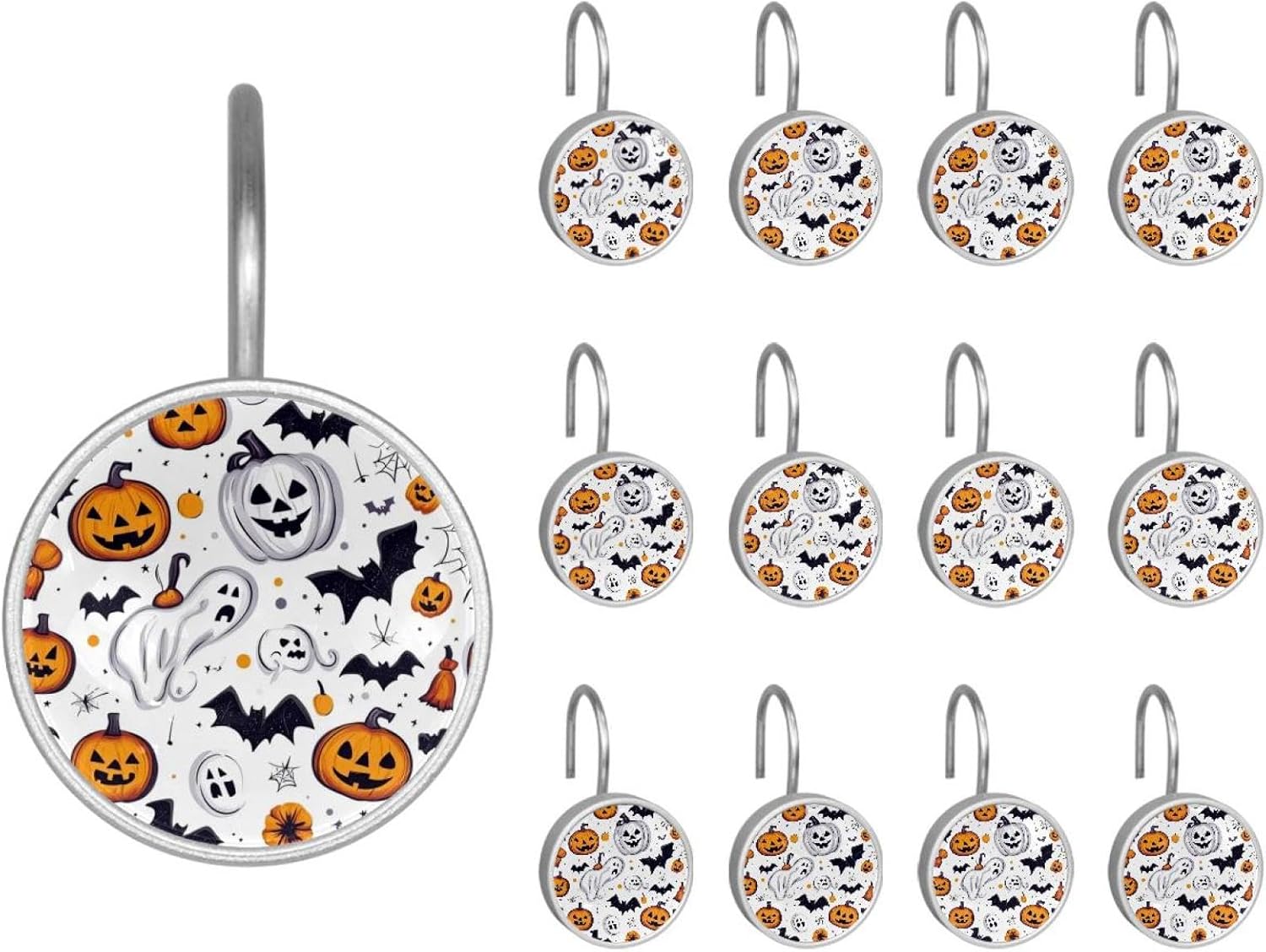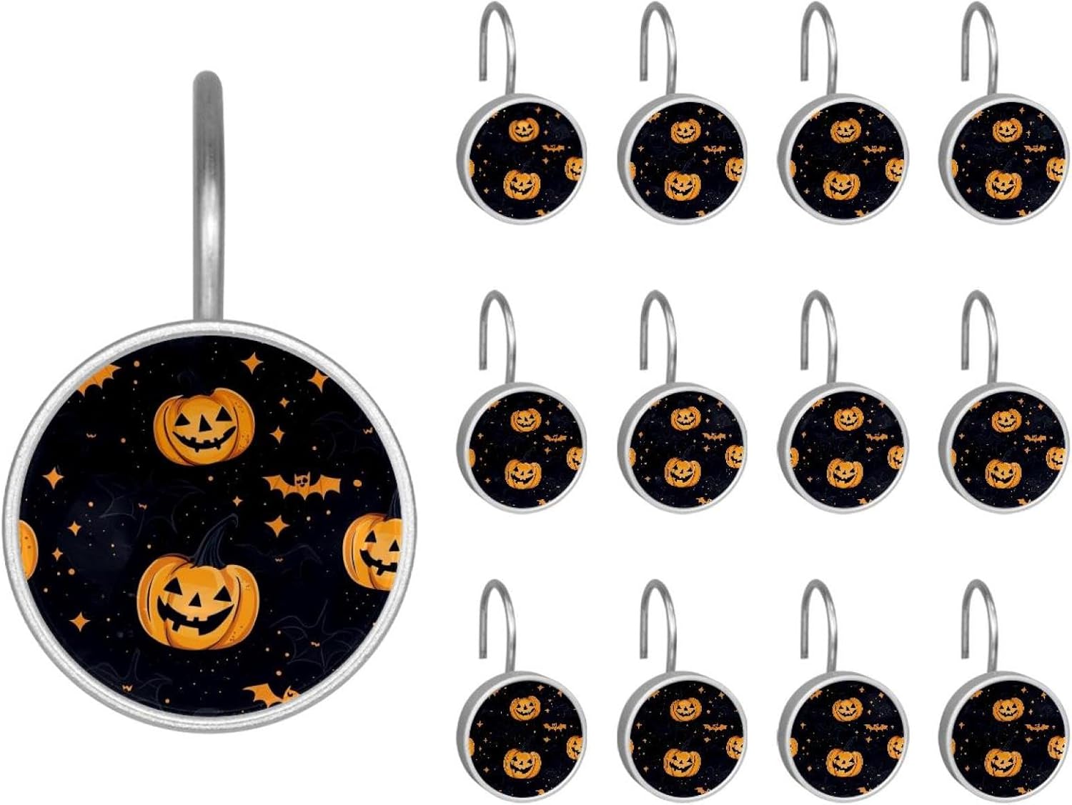 MATERIAL: glass, stainless steel. These shower curtain hooks can be decoration bathroom and will be long-lasting.12 pieces of shower curtain hooks, round crystal glass decoration, printed patterns, silver hooks to match various styles of bathroom shower curtains. SIZE: Crystal glass diameter of round shower curtain hook is 1.45x1.45in/ 3.7x3.7cm. The shower curtain hooks diameter is about 1.1in, 12 pieces shower curtain hooks are suitable for rod of 8-28mm(0.3"-1.1"). RUST RESISTANT:Shower hooks are made of stainless steel and crystal glass, which is durable, rust-proof and corrosion-resistant, it will not rust suitable for wet bathroom environment. EASY TO INSTALL:Hand the shower curtain hooks hold securely on straight or curved shower curtain rods,slid easily and smoothly. Easy to install and decorate your bathroom. BEAUTIFUL AND ELEGANT:Beautiful Love hook add charming scenery for your bathroom, baby room, bedroom, living room, and the gorgeous style is easy to match with any kinds of bathroom shower curtain. EASY GLIDE: Open and close your shower curtain quickly and easily with the Shower Hooks, easily glides on shower curtain rods and tension rods. No snagging; no effort; no hassle PACKAGE: 12 shower curtain hooks in a pack.The bathroom curtain hook has a smooth appearance and can be hung on the pole to pull it at will. Special price 12 sets to meet your needs.