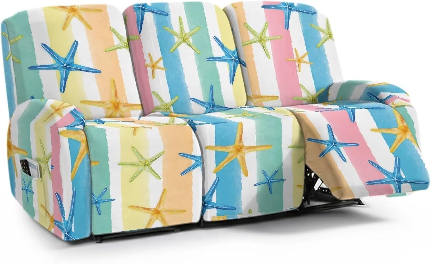 Recliner Chair Covers Material Made of premium quality polyester and spandex is comfortable and sturdy. No fading. Size: 1 seater: back width 27-37 inch, height 30-41inch, bottom width 23-25 inch, side width 26-35 inch 2 seater back width 48-66 inch, height 30-40inch, bottom width 26-36 inch, side width 24-37 inch 3 seater back width 69-91 inch, height 30-40inch, bottom width 26-36 inch, side width 24-37 inch Features Keeping your sofa recliner clean and free from dust and smudges. A variety of print designs to choose from. The perfect chair decoration. Easy to clean and machine washable.