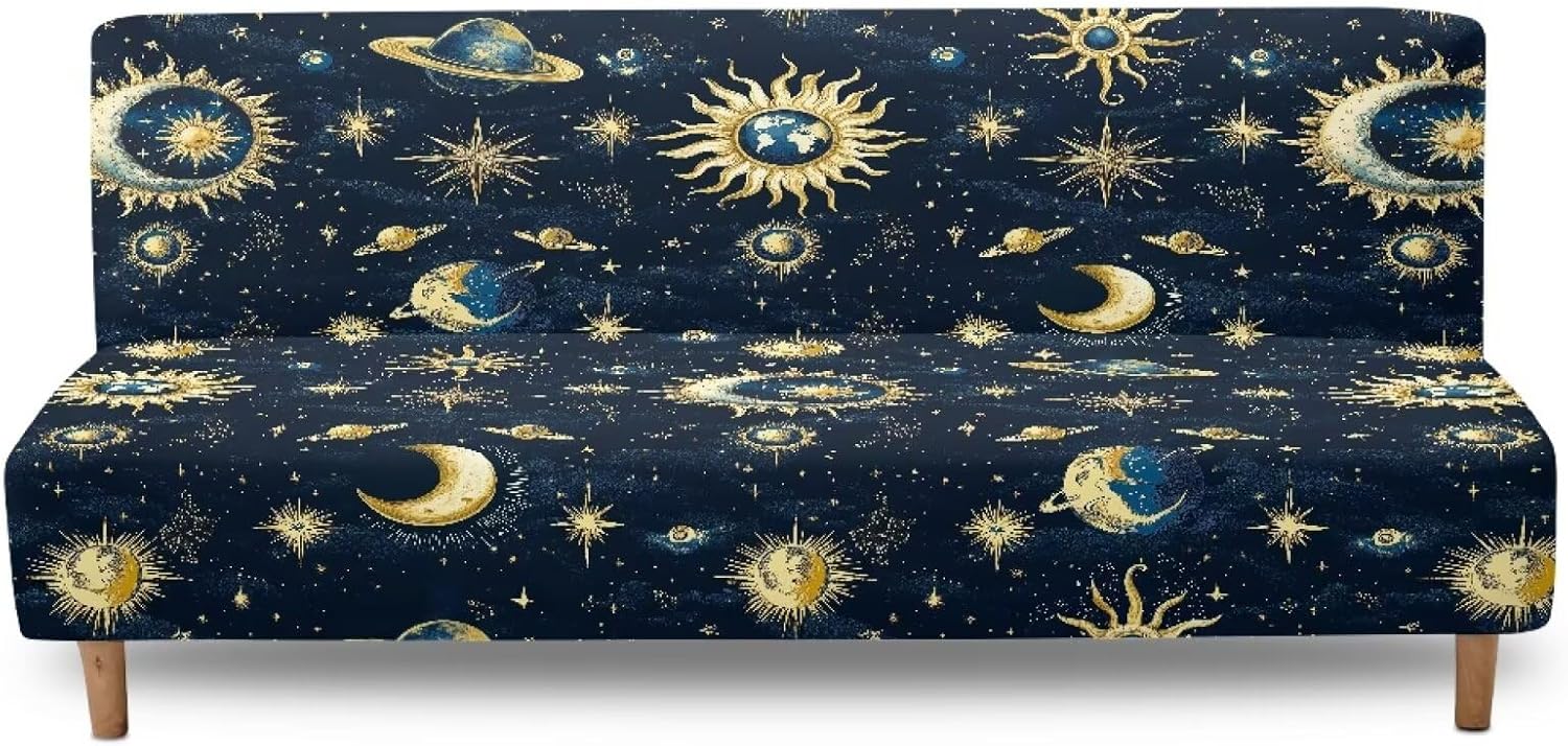 Transform your futon sofa into a stylish, protected piece of furniture with our premium Futon Sofa Slipcover! Whether you're dealing with energetic pets, messy kids, or just want to give your living room a fresh new look, this slipcover delivers both function and fashion. Crafted from a breathable, soft blend of polyester and spandex, this cover offers exceptional stretch and comfort without compromising durability. The elastic bottom edge ensures a tight, anti-slip fit that stays in place all day long—no more shifting or bunching. With full back and seat coverage, it shields your sofa from scratches, stains, crumbs, and everyday wear, extending its life significantly. Our slipcover is perfect for busy households. It's pet-friendly, kid-safe, and spill-resistant, making cleanup a breeze. Just pop it in the washing machine when needed—no hassle, no stress. Plus, the vibrant print adds a cheerful, modern touch to any decor style, turning your ordinary futon into a statement piece. Available in a versatile size range (68–85 inches wide), this slipcover fits most standard and large futon sofas. Thanks to its heavy-duty stitching and flexible design, it’s built to withstand daily use while maintaining its shape and color over time. Give your sofa a brand-new look today—protect it, refresh it, love it. Choose our futon slipcover and enjoy a cleaner, cozier, and more beautiful living space.